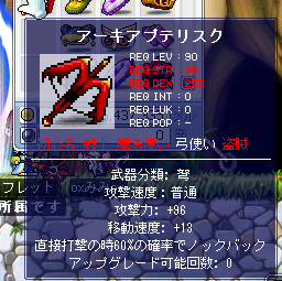 日曜半分以上寝てました Category:めいぽ/雑記 Date:2007年08月27日 どうもこんにちはGPW依存症の私ですが昨日はGPW狩りませんでしたまずはMデスマリから ここも行けば狩れるのでなかなかいいですねやっぱり 行けばすぐ狩れる狩場が好きですねwで この後 メイプルイヤリングをアップグレードしてなかったのでりとるに手伝ってもらえることになったのでオルビスに移動・・・スピネルはルデ登録なので エリニアから船乗っていきましたバル出てきて HP3500あるので余裕かと思ったら死にましたww 3500じゃ足りないようですね・・・この後 無事にメイポイヤはアップグレード出来ましたあとは・・・ このイヤを強化するかそのままか 迷ってますwここで一旦落ちて 午前中の活動は終わり午後はリデでインして 狩りをしてるとおにいさんから内緒がきて 武器を返してくれと言われましたそれなので フリマに移動武器ありがとうございました!!!でこの後 アーキ強化しましたそのとき 出来てしまったのですよ・・・そう 神武器が・・・ なんと7連です!!フフフ・・・ ついに私の時代がきましたね!見よ! 神武器を!!! ハハハハハハ!!すばらしいだろ! え?なに?7連じゃない?よ~くみたまえアップグレード可能回数を!そう このアーキは 失敗7連なのだよまさに神 まあさりげなく素材が良いのはスルーでwこの後は リプレに移動して 骨ドラゴを狩りましたでも 骨ドラゴは空いてないことが多いですしジェネ狩りしないと 大して効率でなかったりもしますまあ 私のキャラはMG切れるので あえてほとんどジェネ使わず狩ってましたwでも 効率はGPWよりちょっと↑ぐらいですかねで 少し狩ったら死んだので 冗談で姫行ってみましたそうしたら 空いてたので 1時間程度狩りましたちょうどいいところで墓ドロップしたので終わりにしました!あと30%でレベル上がりますねう~んでもこの30%が遠いwまあ まったりやりま! iPhoneゲーム・攻略ブログ・ランキング 最近書いた記事 PR