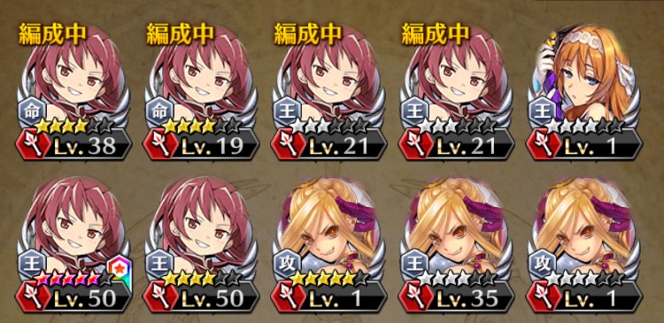 結局スフィアが邪魔なのよね。 Category:ファンキル Date:2016年09月13日 どうもこんにちわ1日1回救済クエスト解放によってレシピが何とかなりそう……?地味にメイデンのHP修正されたのも朗報。かなり時間短縮になりますね!私の手持ちならば、フレンドに強めの方が来ればそこそこの難易度なので楽しい。1日1時間と1回のみで集中するぐらいならなんとか……ドロップ率もまぁまぁですし!嫁アスカロン強いよなー 少しほしくなりますね!ちなみに一番最初に武器が完成するのは杏子になりそう。理由として、マナロンギ単騎にフレンドで命中アップキャラを選べばほぼ確実にクリアできる。マナロンギ単騎でクリアできる証明として、わざと弱めのフレンドを選択。 開始数ターンでシタさんが撃沈…… 弱点以外ほとんど通らない敵もなんのその! 杏子だって確定で倒せますぞ!!! クリアですぞ~やりましたぞ~ ほいドロップ!!たまーに救済の書もドロップしてうまうまうまちなみに私のロンギヌスのステータス ちなみに、マナロンギ×2で行ったら命中が怪しかったので命中は上げたい。武器は射程2のやつを使ってください。強襲カウンターで全部落とせます。マナロンギの運が高いこともあってドロップ率もまぁまぁという最高の環境!杏子マジ好き!!!!!!!後、杏子も4凸分がそろったので育成開始しようと思います 王型と命型しか来なかったから、命で育てようと思ってます……それにしても、ワルプルギス編を回ってるんですけど、スフィア出すぎぃドロップ率を上げようとするとワラワラ出てきやがるマジじゃま!!!!!!ちなみに周回メンバーはこちら(一番下がフレンド) なんか運の全体値が高すぎるとスフィアになる気がするから、試行中。ただし、全体の運が高いと☆4武器直ドロップが多い気がするんだよなぁ?素材的には、悪魔ほむ分を考えなければ、マミ銃1つでコンプですからね!円環集めてる間に魔法少女5人武器分は何とかなりそう。円環は……どうしたもんやら…… iPhoneゲーム・攻略ブログ・ランキング 最近書いた記事 PR